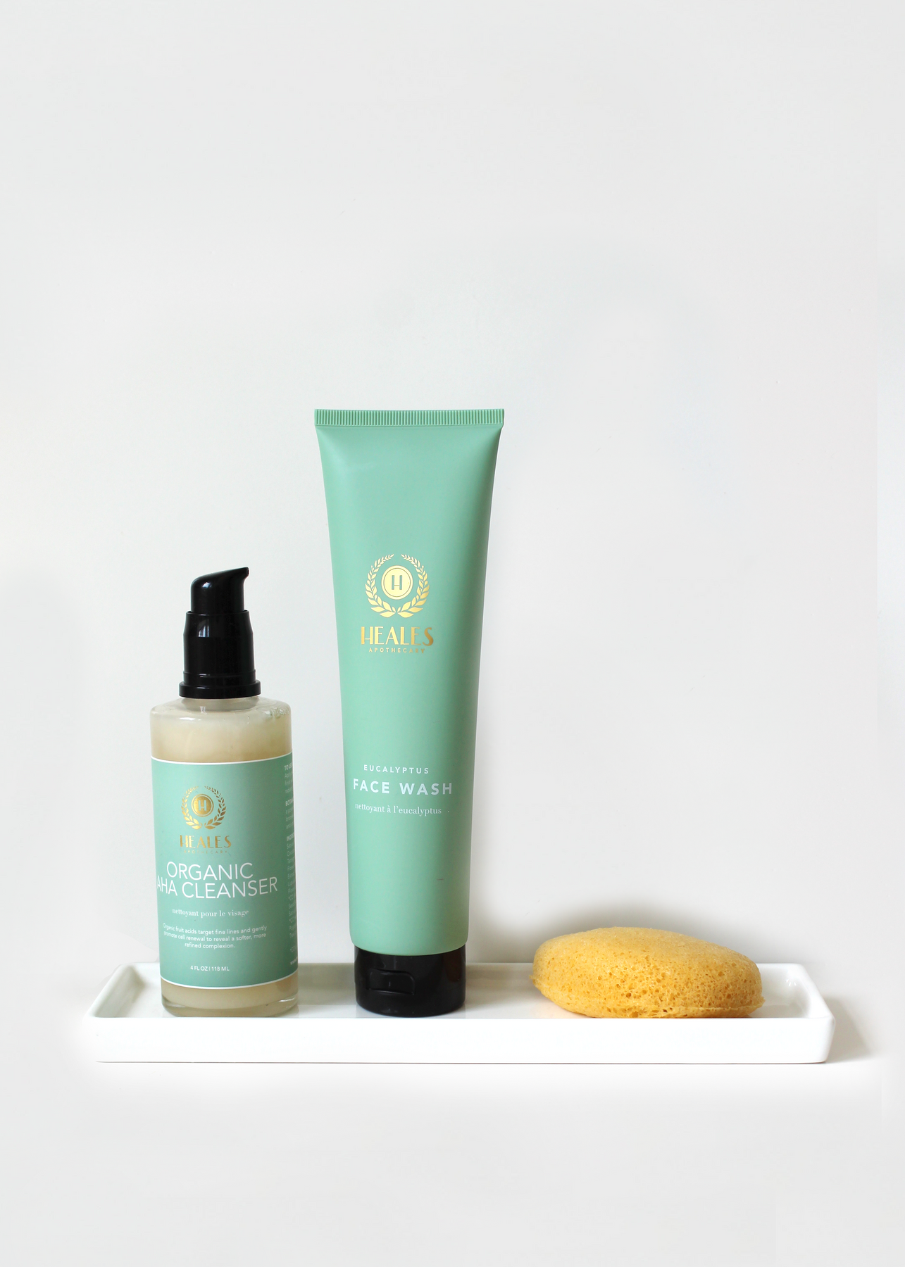Like you, your complexion needs different things at different times of the day. This bundle includes two essential cleansers: An Organic Cream cleanser with natural AHAs to refine and brighten your complexion while you sleep and a mild Eucalyptus Face Wash with all the tingly feels for a fresh start each day. Includes your choice of a Turmeric or charcoal-infused konjac sponge and our branded vanity tray to keep it all neatly together.
