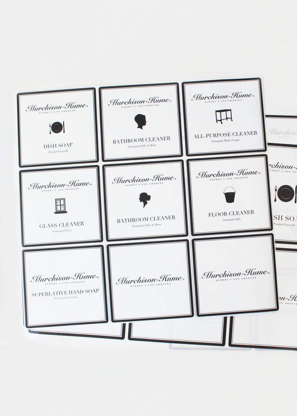 Whether you're trying to adopt a zero-waste lifestyle or just want to consume less plastic, these gorgeous Murchison-Hume product labels fit the bill. Use with our amber glass bottles and trigger sprayers or pumps (sold separately). The set includes labels for both large and small bottles, with multiples of each.